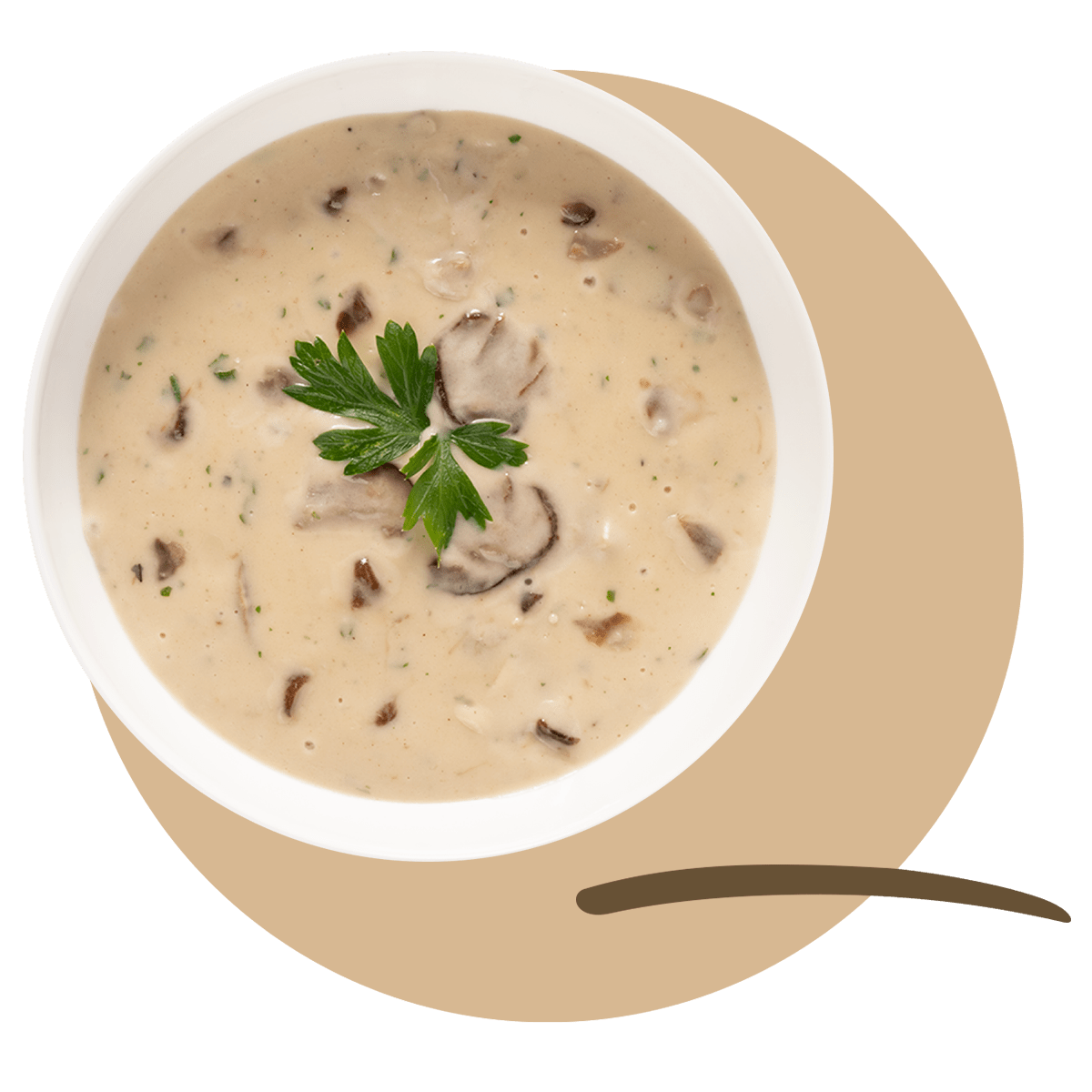 Champinones 24%, aceite de semillas de girasol, boletus 9,5, leche entera fresca pasteurizada, nata, queso, harina de trigo, cebolla, ajo, sal, perejil, boletus secos, fecula de patata, pimienta, agua.