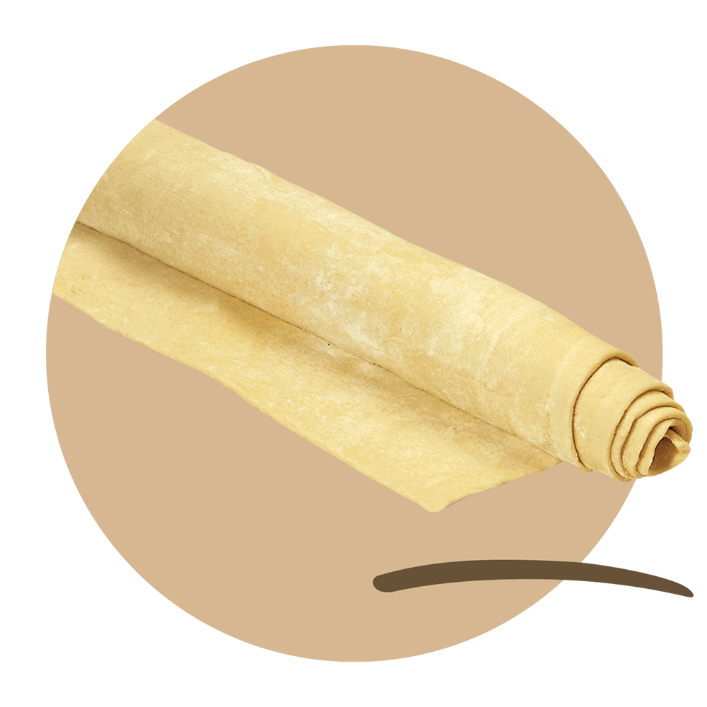 Sfoglidea® Dolcerotolo, la première pâte feuilletée surgelée qui se présente sous forme de rouleau enveloppé dans du papier sulfurisé, (utilisable également pour la cuisson). Idéale pour des préparations de pâtisserie comme les roulés feuilletés, les strudels, la pâte à millefeuilles et les amusebouche salés (biscuits salés, mini pizzas, vol-au-vent).