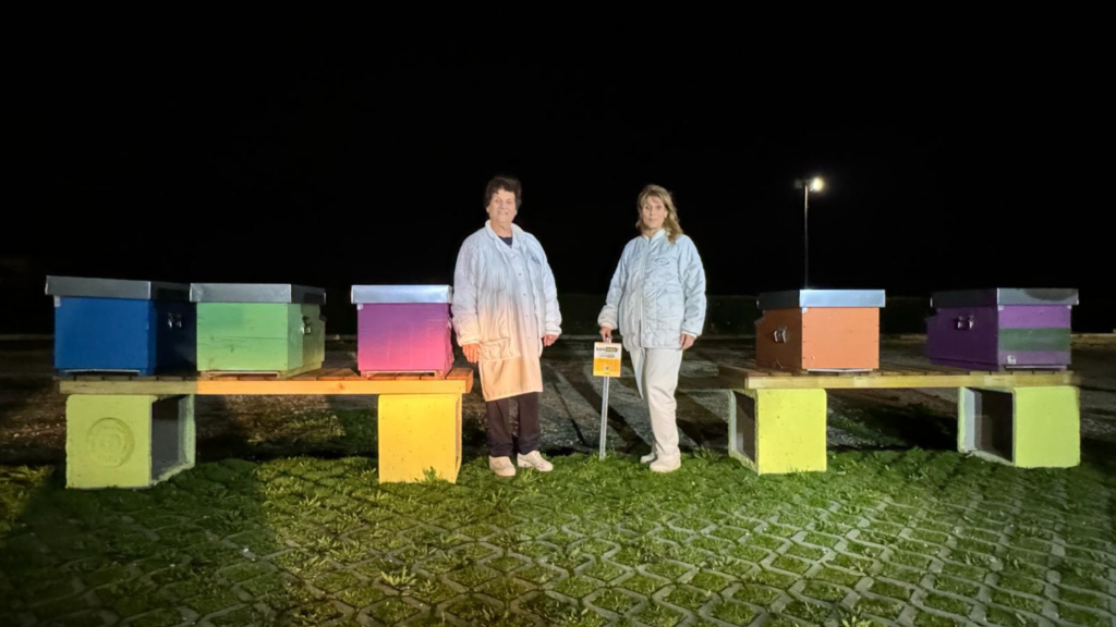 Alle 22.30 di sera, siamo arrivati allo stabilimento Surgital, dove Romana e Cristiana Savoia, Quality Manager di Surgital, ci attendevano al cancello. È stato un momento entusiasmante, durante il quale abbiamo lavorato in perfetta sintonia e coordinazione, posizionando le arnie con delicatezza e attenzione. Come un team consolidato e consapevole di fare qualcosa di utile per l’ambiente.
