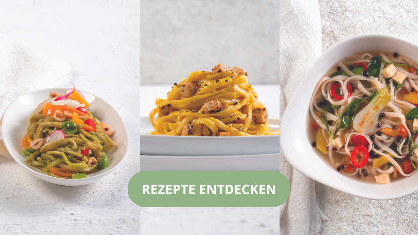 In einer Version Fake Carbonara oder als Kombination im Fusion-Stil im Ramen-Bowl sind die Linguine aus Gemüse, Erbsen und Linsen die perfekten Verbündeten für ein zeitgemäßes, gesundes und schmackhaftes Essen.