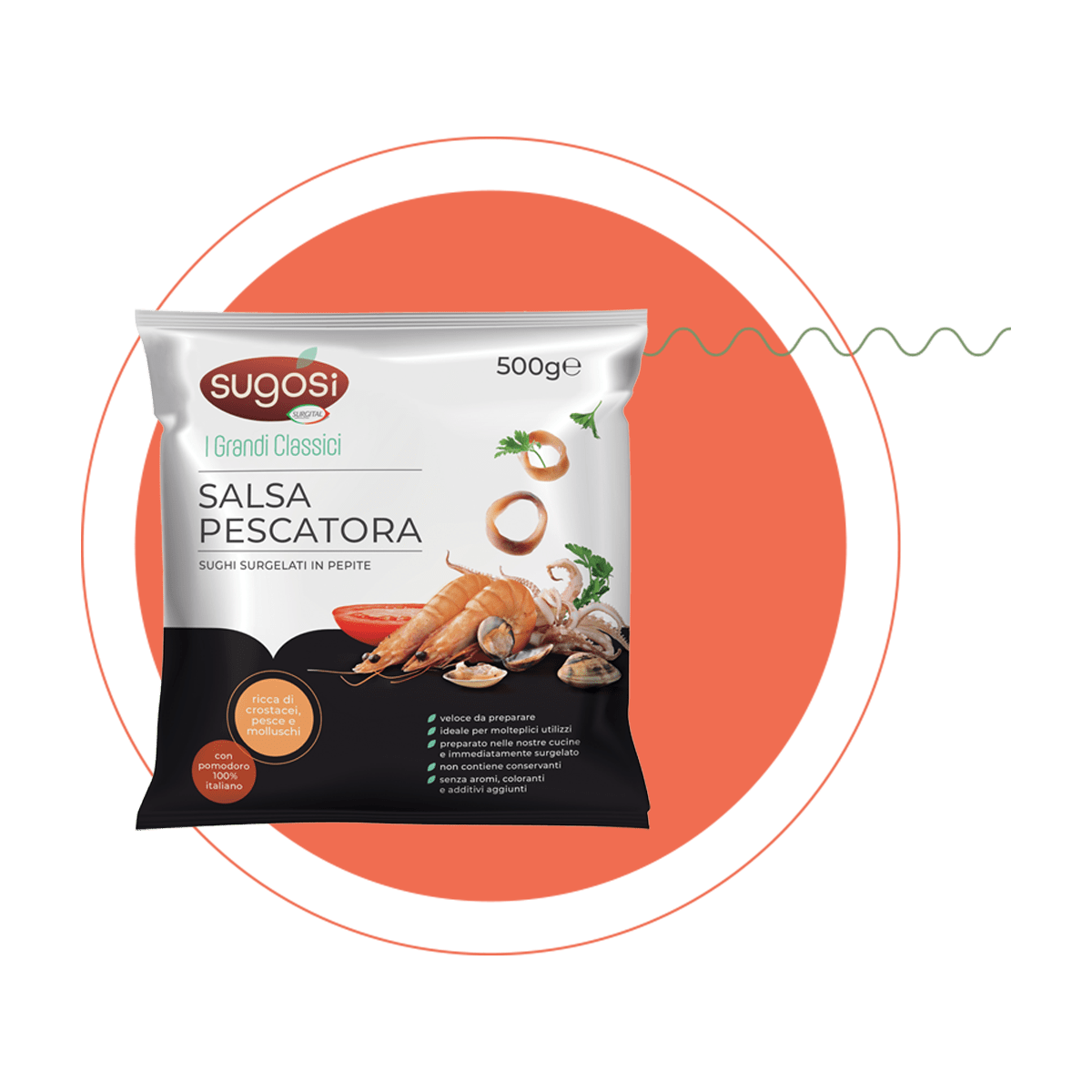 Tomatenfruchtfleisch 49%, Fischfond, Kliesche 10,5%, Venusmuscheln 4,8%, Japanische Venusmuscheln 4,8%, Tintenfisch aus dem Indopazifik 4,5%, zweifach konzentriertes Tomatenmark, Sonnenblumenöl, Nordseekrebse 2,5%, Wein, Weichweizenmehl, extra natives Olivenöl, Petersilie, Salz, Schalotte, Knoblauch, Chilischote.