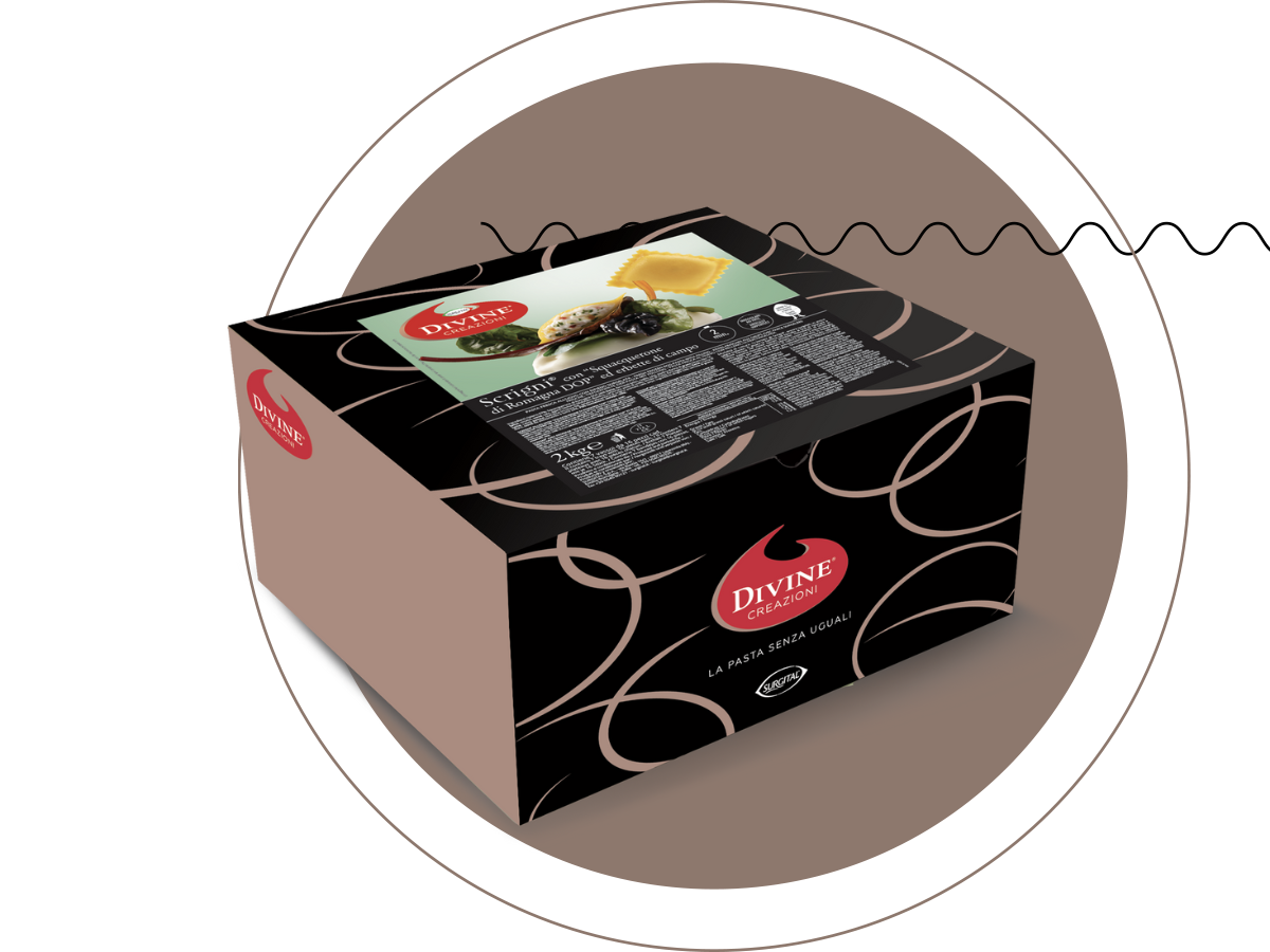 Indicazioni di smaltimento dei Panciotti con melanzana e scamorza di Divine Creazioni®. Il vassoio e la lamina vanno nella plastica e il cartone nella carta. Verifica le disposizioni del tuo comune.