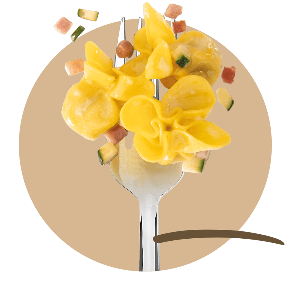 Fresh whole milk, courgettes 29%, cream, smoked ham 7%, Taleggio DOP cheese, soft wheat flour, vegetable margarine, extra virgin olive oil, sunflower oil, parsley, salt. Grated Grana Padano DOP cheese as garnish.
