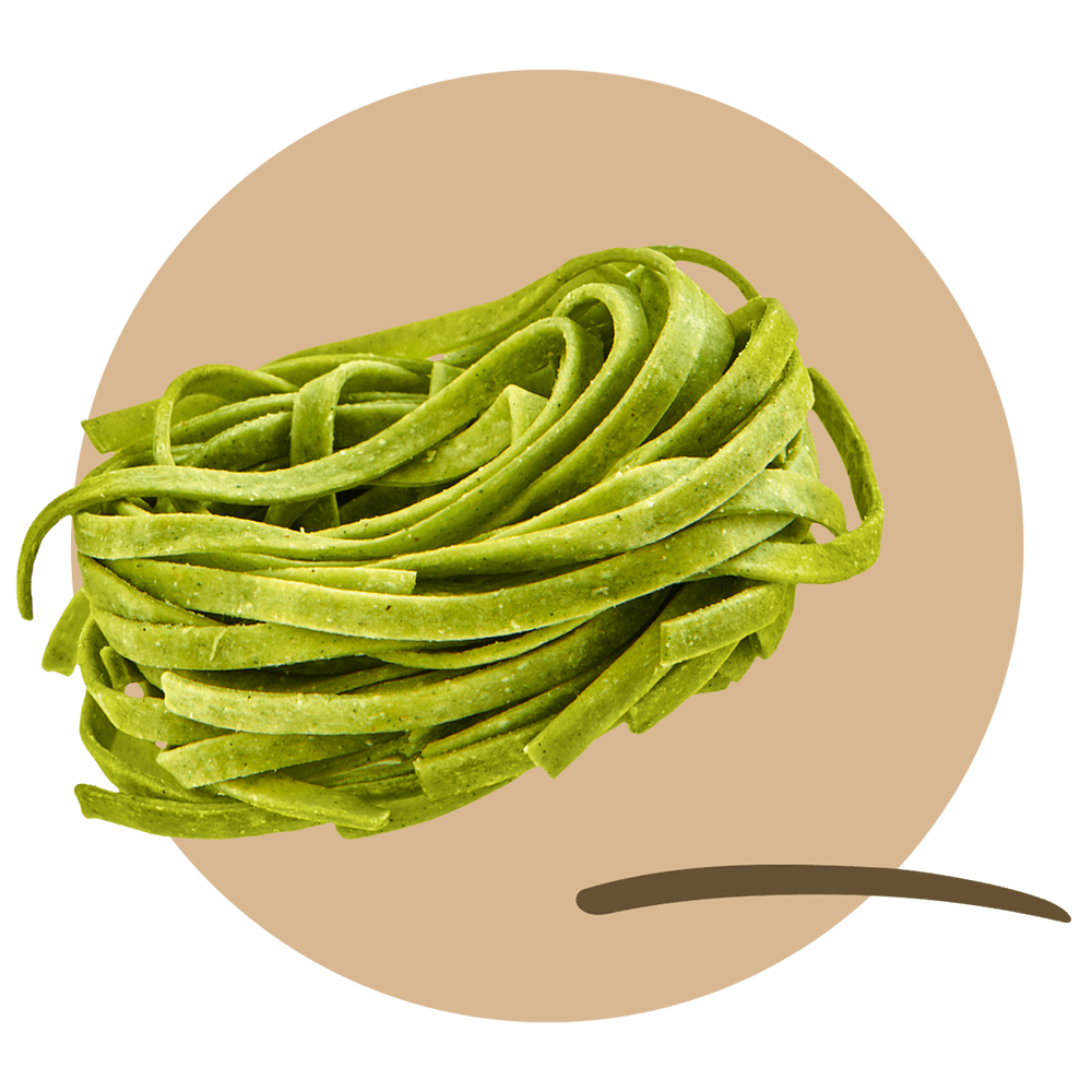 Durum wheat semolina, barn eggs, dehydrated spinach, water, salt.