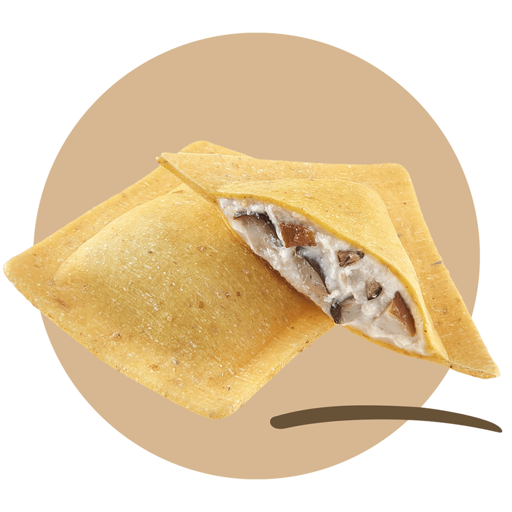 Ricotta, mixed mushrooms 21% (Agaricus bisporus, Pleurotus ostreatus, Lentinus edodes, Pholiota nameko), cep mushrooms 8%, breadcrumbs, Grana Padano DOP, sunflower oil, salt, garlic.
