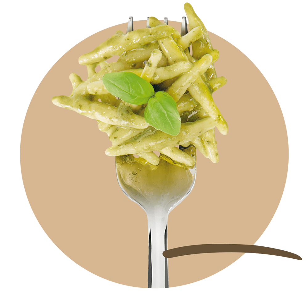 Strigoli with pesto genovese sauce with Nostalgia Canaglia