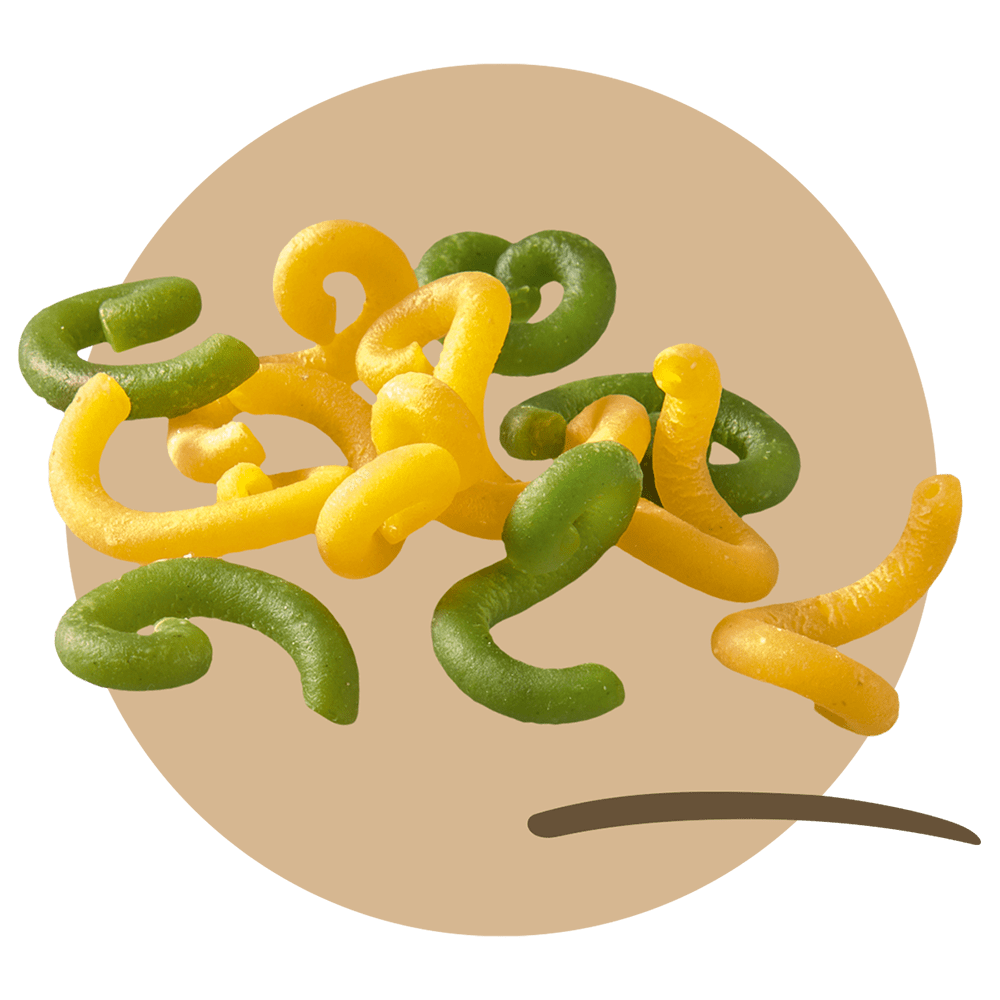 Semoule de blé dur, œufs d’élevage au sol, épinards déshydratés, eau, sel.