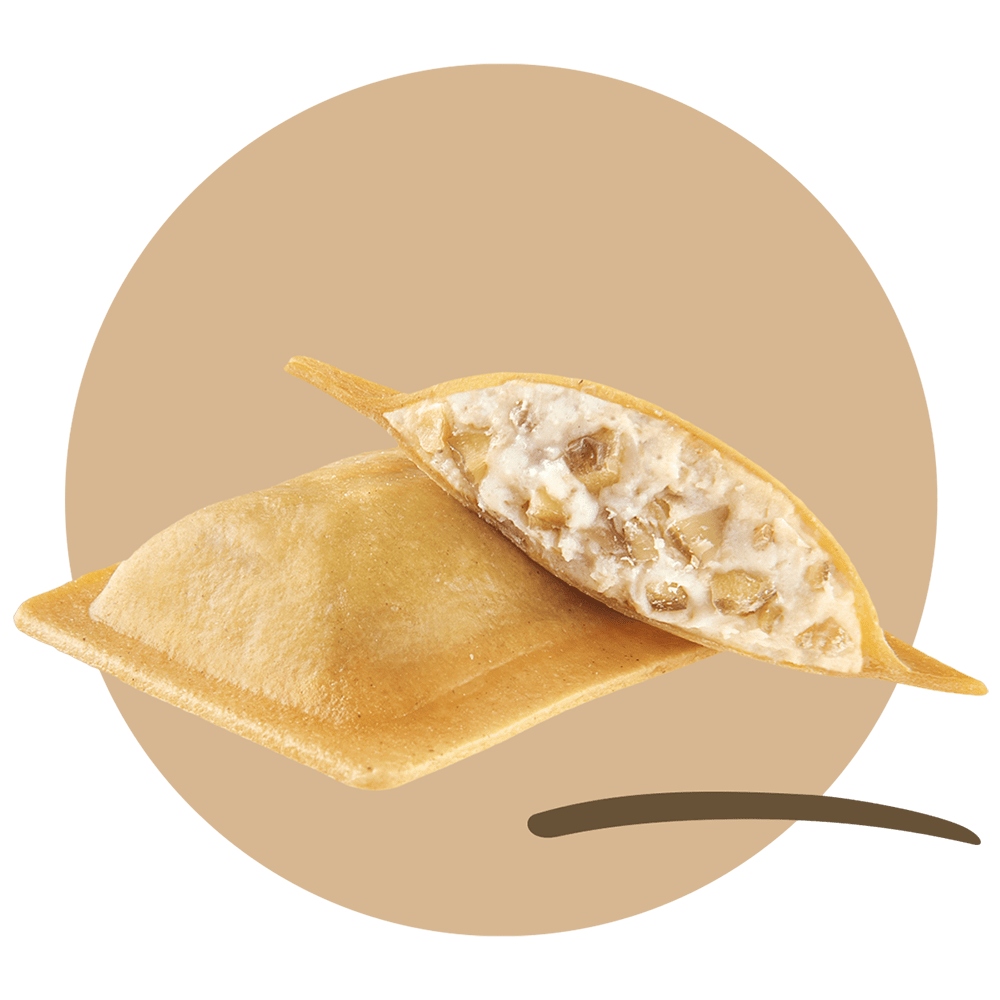 Châtaignes cuites 45% (châtaignes séchées, laurier, eau), ricotta, Parmigiano Reggiano DOP, fromage, œufs d’élevage au sol, sel, poivre.