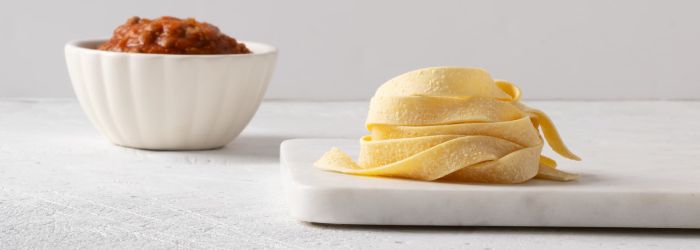 Semola di grano duro, uova da allevamento a terra 18,5%, acqua.