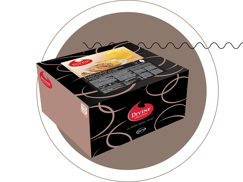 Indicazioni di smaltimento dei Panciotti con melanzana e scamorza di Divine Creazioni®. Il vassoio e la lamina vanno nella plastica e il cartone nella carta. Verifica le disposizioni del tuo comune.