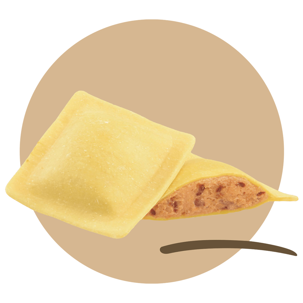 Indicazioni di smaltimento della pasta di Laboratorio Tortellini®. Il sacco va nella plastica e il cartone nella carta. Verifica le disposizioni del tuo comune.