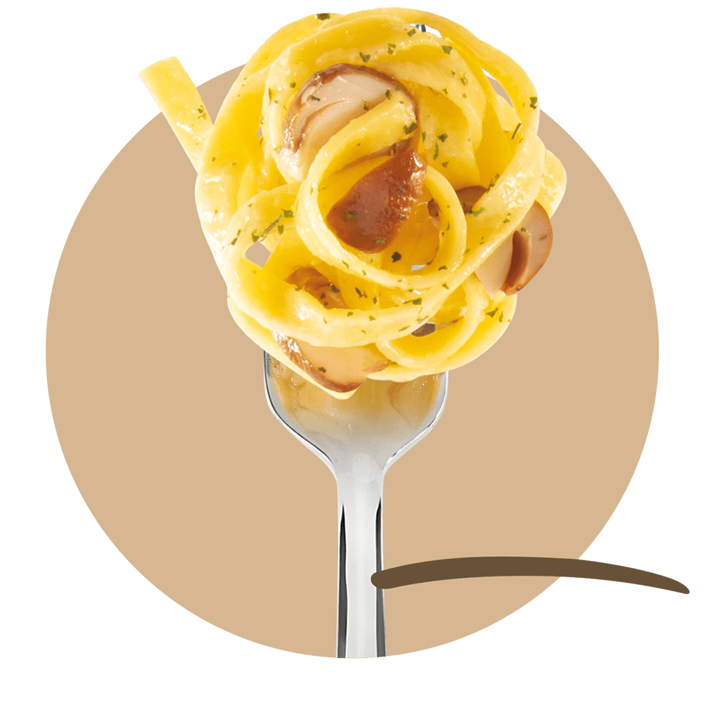 Funghi in proporzione variabile (Agaricus bisporus, Pleurotus ostreatus, Lentinus edodes), funghi porcini 5% (Boletus edulis e relativo gruppo), olio di semi di girasole, panna, Grana Padano DOP (latte, sale, caglio, lisozima da uovo), cipolla, prezzemolo, farina di frumento, sale, aglio, fecola di patata, pepe. Grana Padano DOP (latte, sale, caglio, lisozima da uovo) spolverato in superficie.