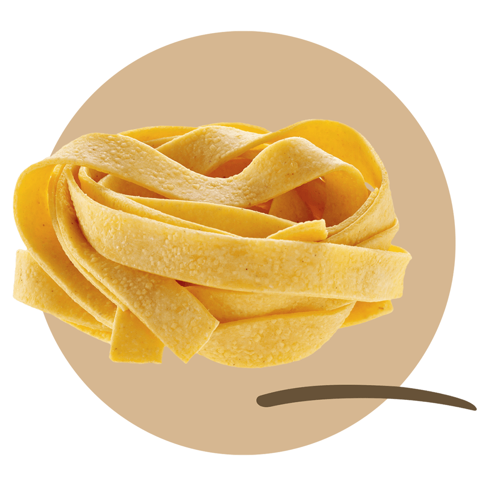 Semola di grano duro, uova da allevamento a terra 18,5%, acqua, sale.
